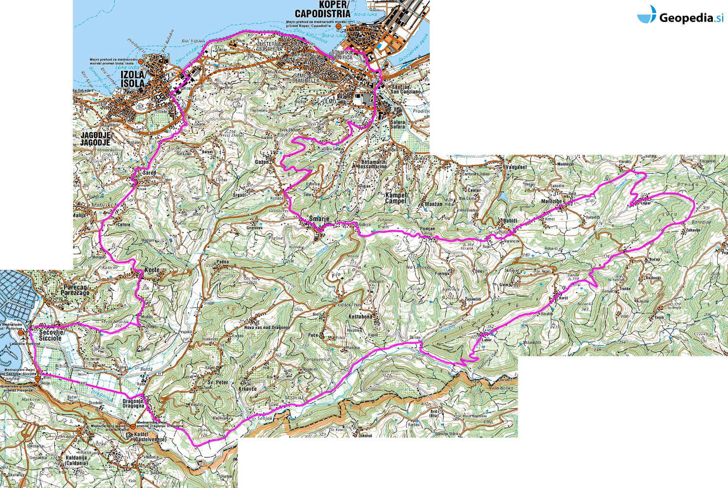Koper, Gažon, Šmarje, Pomjan, Marezige, Lopar, Boršt, Labor, Dragonja, Sečovlje, Korte, Šared, Izola, Koper |