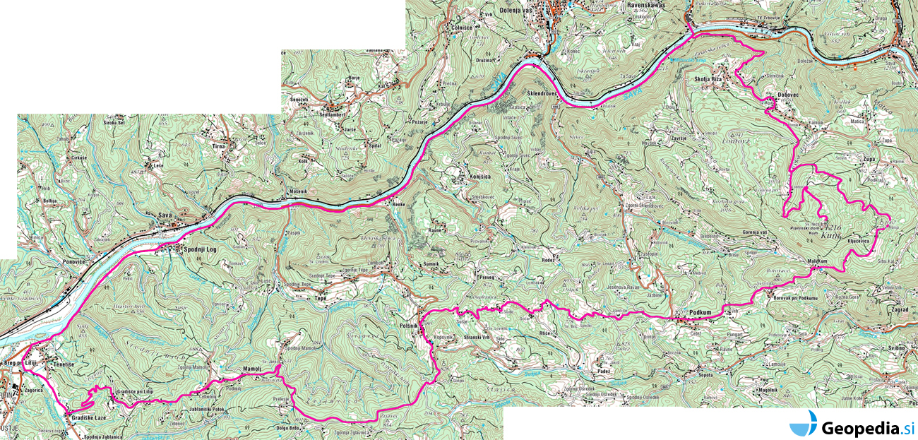 Trbovlje, Dobovec, Lontovž, Kum, Lontovž, Ključevica, Mali Kum, Podkum, Polšnik, Dolgo Brdo, Mamolj, Gradišče, Breg pri Litiji, Trbovlje |