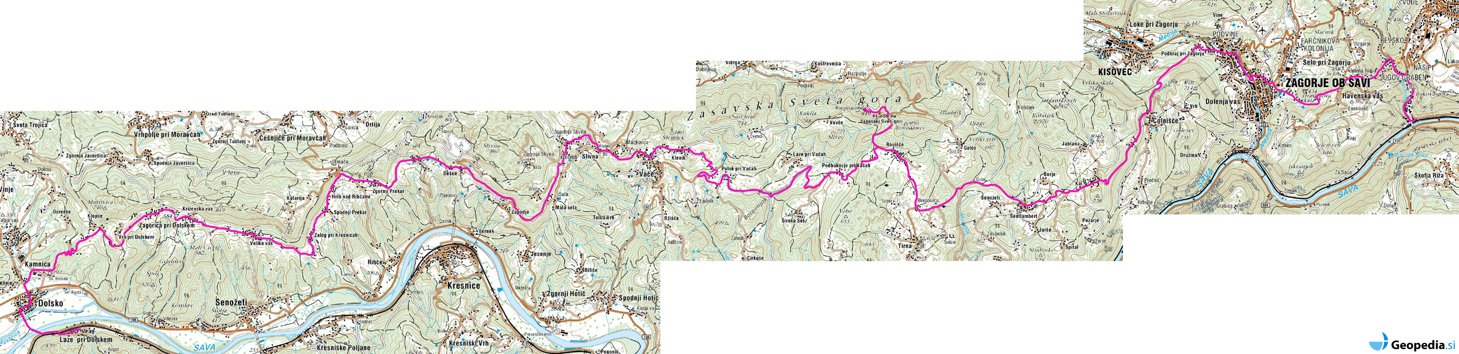 Laze, Dolsko, Zagorica pri Dolskem, Zalog pri Kresnicah, Dešen, Slivna, Vače, Zasavska Sveta gora, Šentlambert, Colnišče, Zagorje ob Savi, Ravenska vas, Trbovlje |